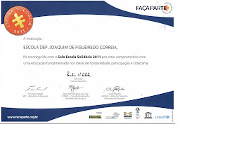 Mais uma vez a Instituição Figueiredo Correia é reconhecida pelo Instituto Faca Parte como uma Escola Solidária. Dessa vez o projeto inovador Momento Cidadão, um grande projeto de nossa Unidade Estadual de Ensino, foi defendido como espaço de promoção de uma Escola Solidária. O Momento Cidadão, se contrapondo ao antigo Momento Cívico da época do Regime Militar, é um espaço para debates, desenvolvimento de atitudes e práticas solidárias, ocasiões em que são socializados os direitos humanos, Estatuto da Criança e do Adolescente e regimento escolar, além da apresentação de outros documentos e discussões que objetivam a efetivação de cidadania. Este projeto serve ainda para dar vez e voz para o Grêmio Estudantil, Conselho Escolar, Unidade Executora e para qualquer membro dessa comunidade escolar e local. Click no Certificado que reconhece o papel solidário desta Escola.